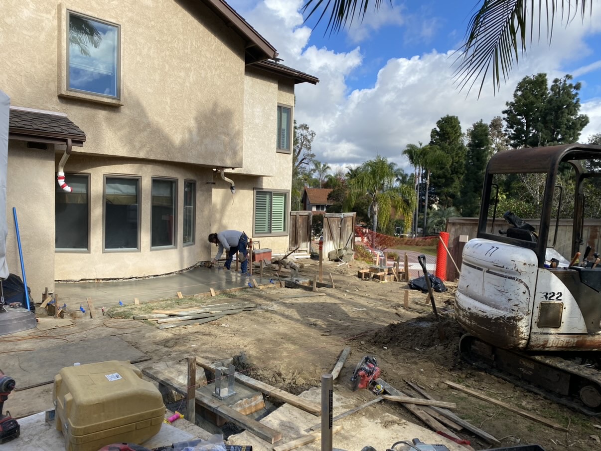 Richard General Contracting offers extensive concrete services, including the professional forming and pouring of outdoor patios, walkways, driveways, and foundations. The process begins with meticulous site preparation, which includes excavation and grading to create a level surface, followed by the installation of a compacted gravel base for proper drainage and stability. The company's team then precisely builds the forms using sturdy materials to create the desired shape and size for the pour. After the forms are in place and any necessary rebar or wire mesh is laid to reinforce the concrete, the concrete is poured, leveled, and a variety of finishing techniques are used to achieve the desired look, whether it's a broom finish for traction or a smooth, decorative surface. This careful and comprehensive approach ensures a durable, long-lasting, and aesthetically pleasing result.